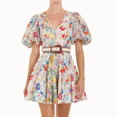 孟子义同款!Zimmermann 拼接设计泡泡袖连衣裙