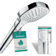 【含税直邮】Hansgrohe 汉斯格雅 Croma Select E 手持花洒 Vario 节水型,白色/铬色,26813400