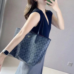 降价!COACH 蔻驰 City 黑灰色老花托特包